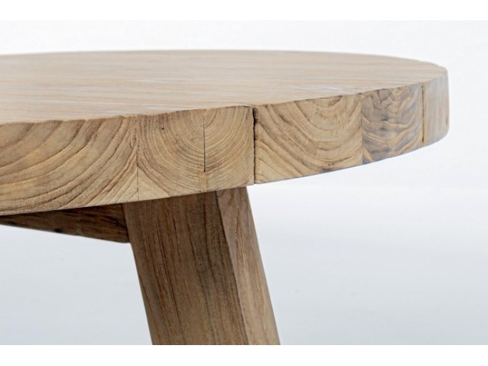 Στρόγγυλο τραπέζι από την σειρά εξωτερικού χώρου Bolivar, από ανακατασκευασμένο ξύλο teak με FSC πιστοποίηση, σε ρουστίκ τελείωμα.