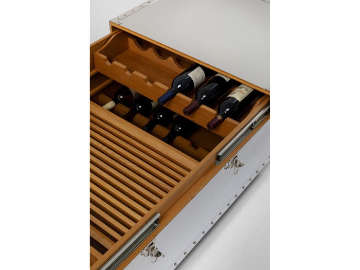 Οι επεκτεινόμενες επιφάνειες παρέχουν καθαρή θέα του κρυμμένου μπαρ με τις θήκες για μπουκάλια στο εσωτερικό του