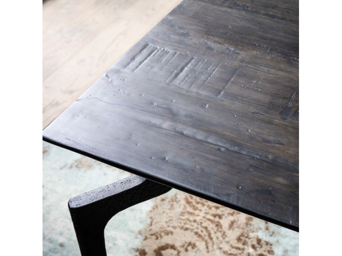 Τα έξυπνα διαμορφωμένα, σφυρήλατα ατσάλινα πόδια, οι κεκλιμένες άκρες του τραπεζιού και η ζωντανή δομή της επιφάνειας από ανακυκλωμένο ξύλο είναι μοναδικά
