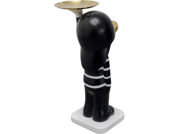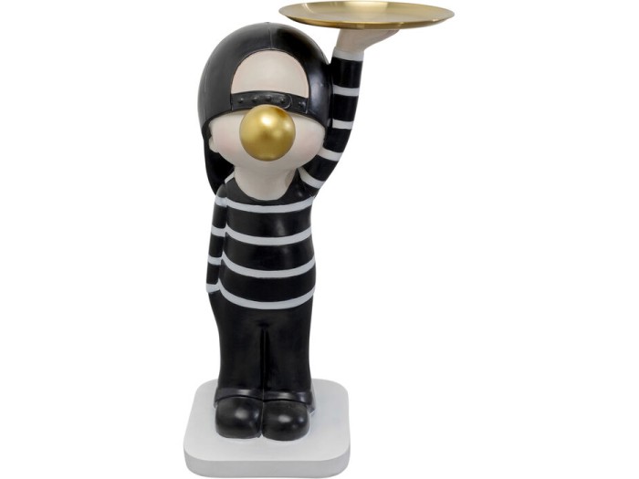 Τι κάνει ένα σπίτι που νιώθει καλά; Άνεση, άνεση και εξατομικευμένη ατμόσφαιρα στην οποία αισθάνεστε απόλυτα άνετα. Αν έχετε αίσθηση του χιούμορ και επίσης σας αρέσουν τα μοντέρνα, καλλιτεχνικά αντικείμενα εσωτερικής διακόσμησης, τότε αυτό το δροσερό παλικάρι με το καπέλο, που λειτουργεί ως βοηθητικό τραπέζι και μπάτλερ, θα μπορούσε να είναι ακριβώς το πράγμα σας.Γνήσιο, ασπρόμαυρο βοηθητικό τραπέζι με διακοσμητικό αγόρι και δίσκο, 73,5 x 41,5 x 34 cm (Υ/Π/Α)