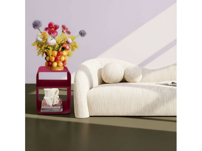 Η compact κατασκευή του το καθιστά ιδιαίτερα ευέλικτο: μπορεί να χρησιμοποιηθεί ως τραπεζάκι σαλονιού, πρακτική επιφάνεια αποθήκευσης ή ως ιδιαίτερο κομοδίνο με χαρακτήρα. Η στιβαρή του κατασκευή και η επιφάνεια εύκολης συντήρησης εγγυώνται μακροχρόνια χρήση, ενώ η πλούσια berry απόχρωση προσθέτει μοντέρνες πινελιές και χαρίζει βάθος και ζεστασιά σε urban ή contrast χώρους.