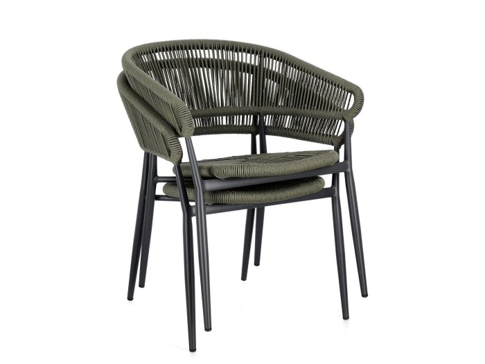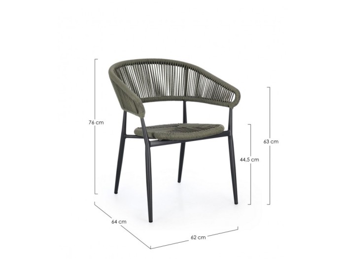 Η καρέκλα εξωτερικού χώρου Algaida διαθέτει αλουμινένιο σκελετό με ηλεκτροστατική βαφή πολυεστέρα σε γκρι απόχρωση, προσφέροντας αντοχή στις καιρικές συνθήκες και στη σκουριά. Η πλέξη από συνθετικές ίνες (twisted) σε πράσινο χρώμα ενισχύει τη μοντέρνα αισθητική της. Με διαστάσεις 62x64x76 εκ., είναι ιδανική για βεράντες, κήπους ή επαγγελματικούς εξωτερικούς χώρους.| Μήκος | 62 |