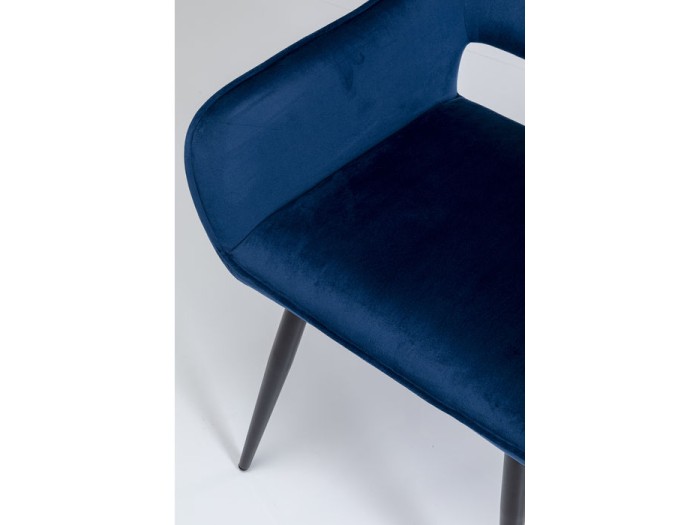 – Μπλε πολυθρονάκι με βελούδινη επένδυση, κομψή γραμμή και σταθερά, λεπτά πόδια από ατσάλι με επίστρωση πούδρας