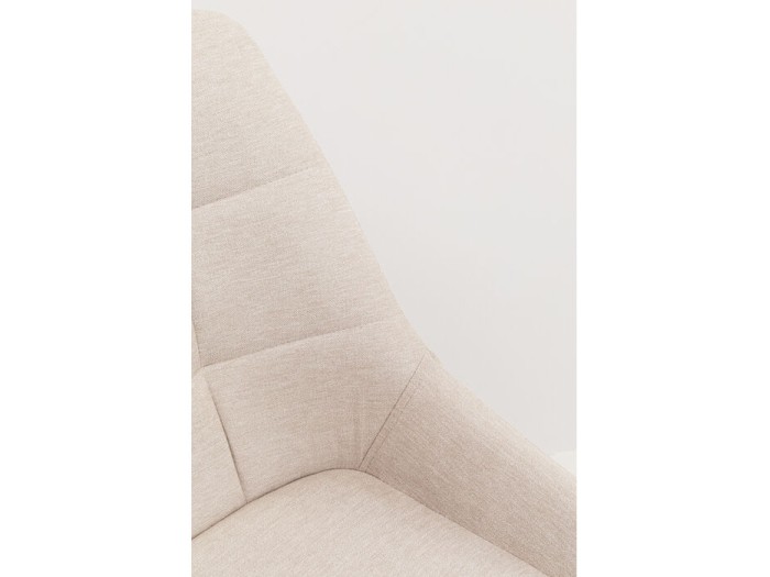 Η καρέκλα τραπεζαρίας KARE συνδυάζει κομψότητα, άνεση και λειτουργικότητα σε ένα σύγχρονο design που ταιριάζει σε κάθε μοντέρνο χώρο. Η απαλή, υφασμάτινη επένδυση σε φυσική μπεζ απόχρωση χαρίζει ζεστασιά και διακριτική πολυτέλεια, ενώ το διακριτικό καπιτονέ μοτίβο στην πλάτη προσθέτει μια αίσθηση χειροποίητης λεπτομέρειας. Το κάθισμα και η πλάτη αγκαλιάζουν το σώμα με άνεση, προσφέροντας εξαιρετική στήριξη χάρη στο ποιοτικό αφρώδες υλικό υψηλής πυκνότητας.