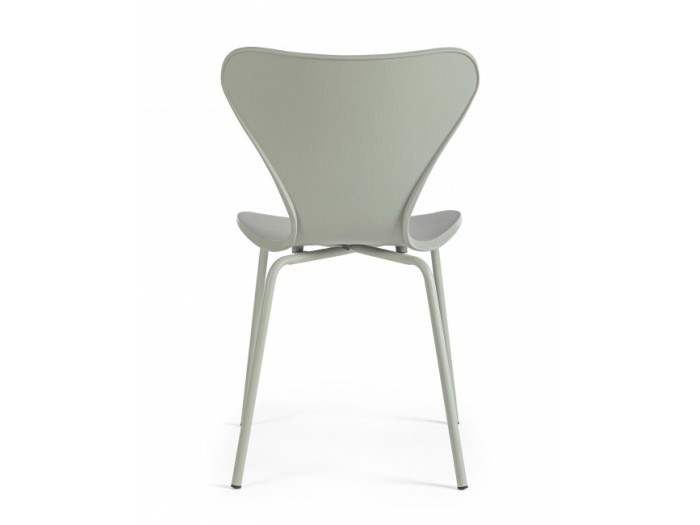 Στοιβαζόμενη καρέκλα με πλαστικό κάθισμα και πλάτη σε λαδί απόχρωση και μεταλλικά πόδια.