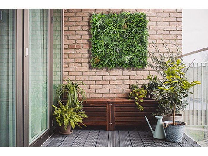 Συνθετικό διακοσμητικό πάνελ με πυκνή φυλλωσιά, σε πλακίδιο 1m x 1m. Έχει τρισδιάστατη όψη και δίνει μια αίσθηση ζωντάνιας και φυσικότητας στον χώρο σας. Διακοσμήστε τον εξωτερικό ή εσωτερικό χώρο σας με τα πάνελ φυλλωσιάς και δημιουργήστε έναν μοναδικό κάθετο κήπο.