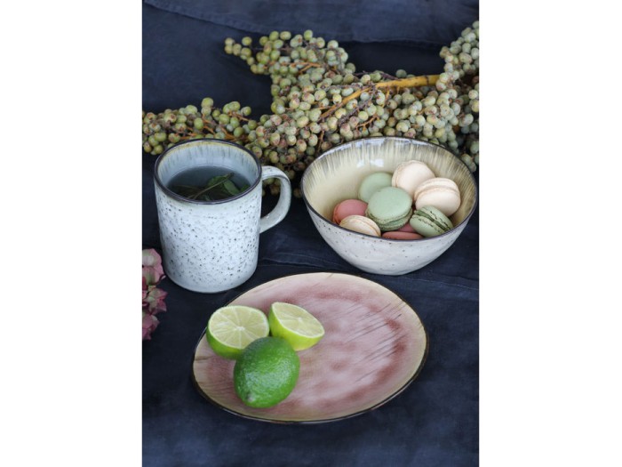 Ένα ιδιαίτερο κεραμικό πιάτο για επιδόρπιο από την σειρά Vivido, με εφέ ραγίσματος στην επιφάνειά του και επεξεργασία γυαλίσματος.