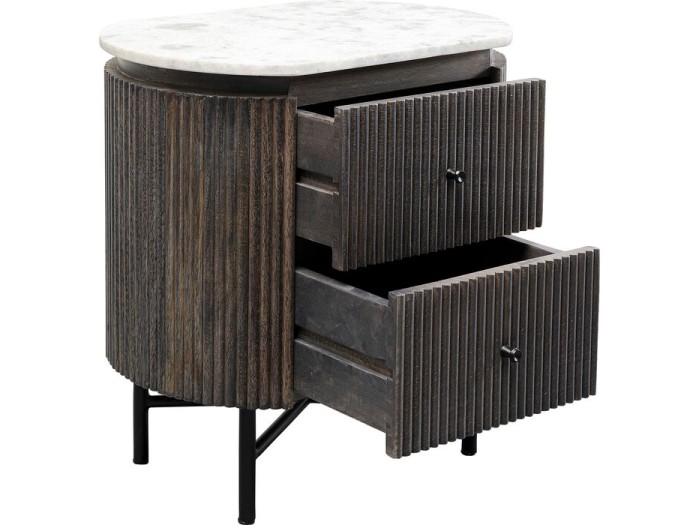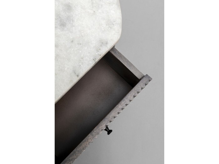 Η πλάκα κάλυψης από πραγματικό μάρμαρο προσδίδει στην ξύλινη συρταριέρα μια ελκυστική αισθητική πινελιά