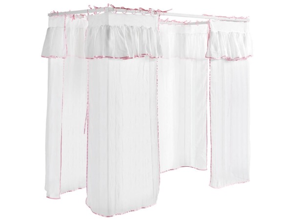 Κουρτίνα Ουρανού σε Λευκό Χρώμα και Ροζ λεπτομέρειες για μικρές και μεγάλες πριγκίπισσες.