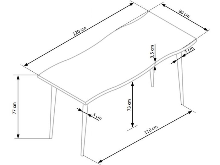 διαστάσεις: 120/80/77 cm, υλικό: πλαστικοποιημένο MDF / ατσάλι με επίστρωση πούδρας, χρώμα: επάνω - φυσική δρυς, πόδια - μαύρο