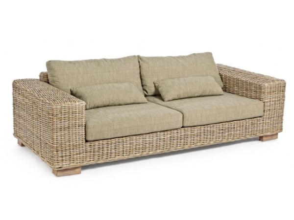 Καναπές κατασκευασμένος από ξύλο μάνγκο και ύφανση kubu με φυσικό τελείωμα.