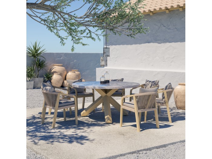 Το τραπέζι Terrazzo φέρνει φυσική κομψότητα και μοντέρνο στυλ στον χώρο σας, συνδυάζοντας υλικά υψηλής ποιότητας και εκλεπτυσμένο σχεδιασμό. Η στρογγυλή του επιφάνεια από υλικό terrazzo ξεχωρίζει για την μοναδική της υφή και την ανθεκτικότητα, ενώ προσδίδει μια σύγχρονη και φρέσκια αισθητική. Η στιβαρή βάση από φυσικό ξύλο ευκαλύπτου σε ανοιχτή απόχρωση προσφέρει σταθερότητα και ζεστασιά, δημιουργώντας έναν αρμονικό συνδυασμό με την ιδιαίτερη επιφάνεια. Το Terrazzo είναι ιδανικό για καθιστικούς ή επαγγελματικούς χώρους που αναζητούν διαχρονική φινέτσα και μοντέρνο design. Ένα τραπέζι που ενσωματώνει την φυσική ομορφιά με τη μοντέρνα αισθητική, αναβαθμίζοντας κάθε χώρο με μοναδικό χαρακτήρα και πρακτικότητα.