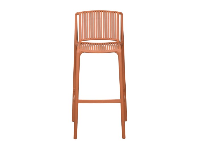 Το σκαμπό Bar Polly συνδυάζει κομψότητα και λειτουργικότητα, αποτελώντας την ιδανική επιλογή για εσωτερικούς και εξωτερικούς χώρους. Η κατασκευή του από πολυπροπυλένιο (PP) σε terracotta απόχρωση προσφέρει ανθεκτικότητα και στυλ, ενώ ο εργονομικός σχεδιασμός του εξασφαλίζει άνεση. Είναι στοιβαζόμενο για εύκολη αποθήκευση και διαθέτει ειδική βαφή με UV προστασία, που εγγυάται αντοχή στον χρόνο και στις καιρικές συνθήκες, ακόμα και υπό έντονη ηλιακή έκθεση.