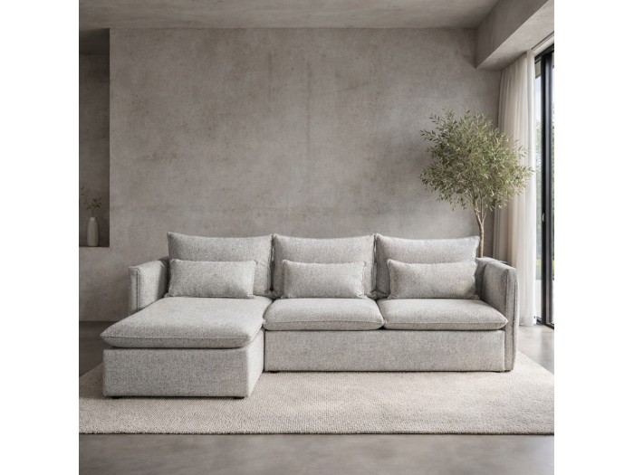 Ο αριστερός γωνιακός καναπές PROUD προσφέρει άνεση και design για κάθε καθιστικό. Με διαστάσεις 258x180x90 εκ., ανοιχτό γκρι ύφασμα chenille και υποστηρίζεται από σκελετό από ξύλο πεύκου, εξασφαλίζοντας σταθερότητα και αντοχή.