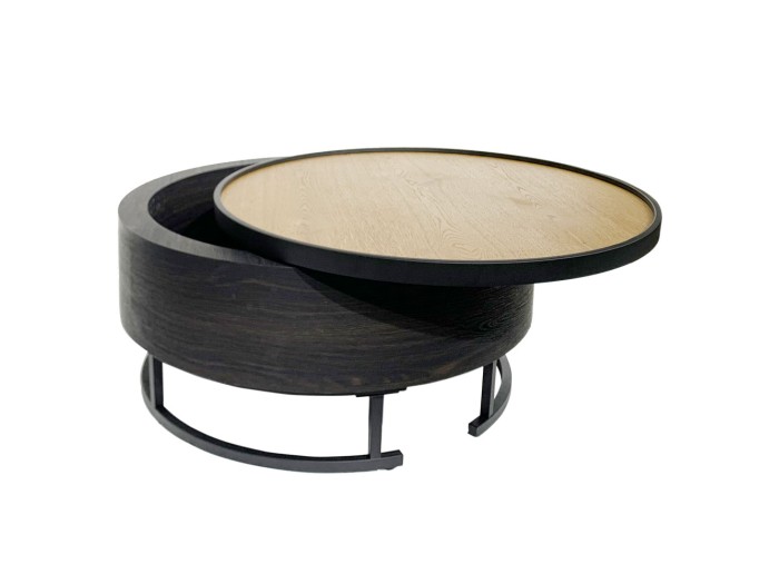 Το τραπεζάκι σαλονιού Barrel συνδυάζει την αισθητική με την πρακτικότητα, προσφέροντας έναν κομψό αποθηκευτικό χώρο που ταιριάζει σε κάθε μοντέρνο σαλόνι. Η επιφάνειά του σε φυσικό χρώμα και το μαύρο σώμα του δημιουργούν μια κομψή αντίθεση, ενώ η κατασκευή από μοριοσανίδα με επένδυση μελαμίνης carta προσφέρει ανθεκτικότητα και ποιότητα. Ο κυκλικός σχεδιασμός του με τα λεπτά, μαύρα μεταλλικά πόδια προσδίδει μοντέρνα βιομηχανική αισθητική, ενώ ο αποθηκευτικός χώρος κρύβεται διακριτικά κάτω από την επιφάνεια του τραπεζιού, ιδανικός για την τακτοποίηση αντικειμένων. Το Barrel είναι η τέλεια επιλογή για όσους θέλουν να συνδυάσουν την πρακτικότητα με την κομψότητα στον χώρο τους.