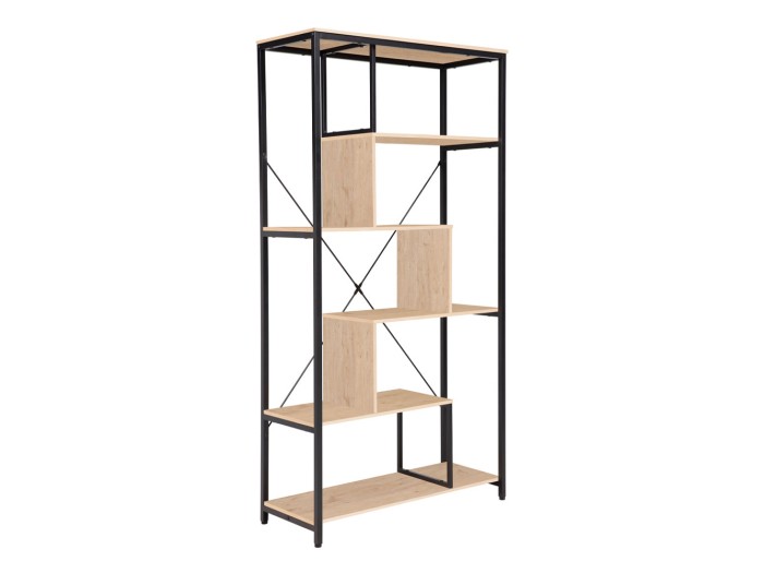 Η βιβλιοθήκη Quick ενσωματώνει την κομψότητα με τη λειτουργικότητα, προσφέροντας έναν μοντέρνο σχεδιασμό που αναδεικνύει κάθε χώρο. Κατασκευασμένη από υψηλής ποιότητας μελαμίνη σε φυσική απόχρωση ξύλου, συνδυάζεται αρμονικά με τον μαύρο μεταλλικό σκελετό, δημιουργώντας μια διαχρονική αισθητική. Με ευρύχωρα ράφια, είναι ιδανική για την οργάνωση βιβλίων, διακοσμητικών ή προσωπικών αντικειμένων. Η Quick αποτελεί μια πρακτική και καλαίσθητη επιλογή για κάθε σπίτι ή γραφείο.