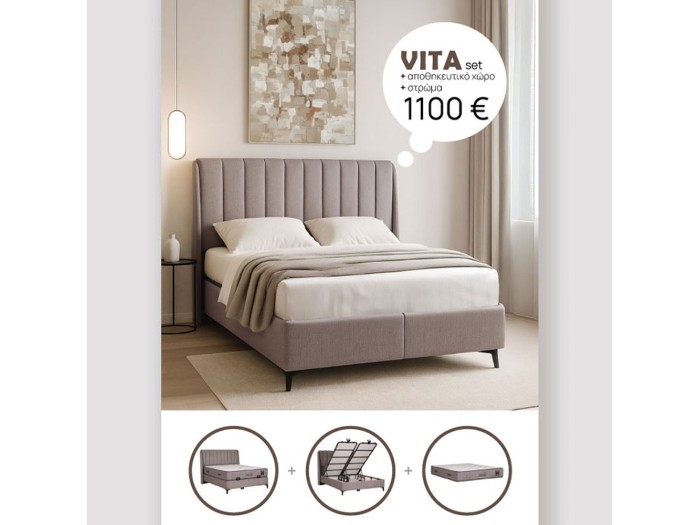 VITA Το κρεβάτι που δίνει ζωή στον χώρο σας! Το σετ VITA μεταμορφώνει το υπνοδωμάτιό σας σε έναν χώρο γεμάτο ενέργεια, άνεση και αρμονία. Σχεδιασμένο για να προσφέρει “νέα VITA” στην καθημερινότητά σας, συνδυάζει μοναδικά την αισθητική με τη λειτουργικότητα, προσφέροντας έξυπνο και ευρύχωρο αποθηκευτικό χώρο που θα οργανώσει ιδανικά το δωμάτιο και τη ρουτίνα σας.Το ορθοπεδικό στρώμα διαθέτει ανεξάρτητα ελατήρια Pocket, πυκνότητας 230 ελατηρίων/m², τα οποία λειτουργούν αυτόνομα, αγκαλιάζοντας το σώμα και προσφέροντας άριστη ανατομική υποστήριξη. Διασφαλίζουν σωστή ευθυγράμμιση της σπονδυλικής στήλης και σταθερή κατανομή του βάρους – για ύπνο πραγματικά αναζωογονητικό.Οι πολυεπίπεδες στρώσεις αφρώδους υλικού υψηλής επαναφοράς και στις δύο πλευρές χαρίζουν αξεπέραστη άνεση και ξεκούραση, ενώ η περιμετρική λάμα στήριξης σε συνδυασμό με τον αφρό υψηλής πυκνότητας ενισχύουν τη σταθερότητα και τη μακροχρόνια αντοχή του στρώματος.Όλα τα υλικά είναι αντιαλλεργικά και υποαλλεργικά, ιδανικά για άτομα με ευαισθησίες. Το στρώμα διαθέτει πρακτικές χειρολαβές για εύκολη περιστροφή και συντήρηση. Εγγύηση: 10 χρόνια για τα ελατήρια ,2 χρόνια για τα αφρώδη υλικά. Ύψος στρώματος: 29 cm ±1 cm.