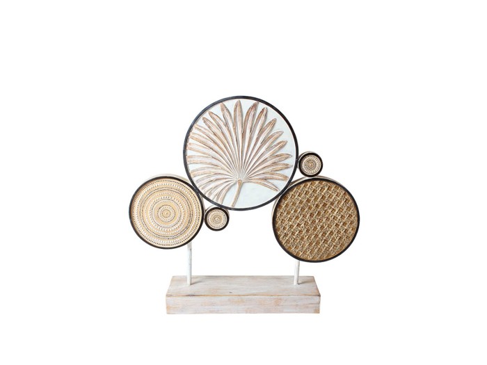 Το GINKO 3 είναι ένα ιδιαίτερο διακοσμητικό totem που συνδυάζει polyresin και μέταλλο, προσφέροντας μια καλλιτεχνική και μοντέρνα σύνθεση. Οι φυσικές μπεζ και λευκές αποχρώσεις του δημιουργούν μια γήινη και κομψή αισθητική που ταιριάζει σε κάθε σύγχρονο περιβάλλον. Η στιβαρή κατασκευή εξασφαλίζει ανθεκτικότητα και σταθερότητα, κατάλληλη για επαγγελματικούς και οικιακούς χώρους. Τοποθετείται ιδανικά σε μπουφέδες, ράφια ή γραφεία ως statement decor που τραβά το βλέμμα.