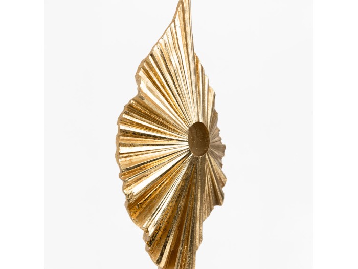 Το διακοσμητικό USSIA Totem εντυπωσιάζει με τη μοναδική του μορφή που θυμίζει φύλλο φοίνικα ή ηλιακή ακτίνα, σε χρυσό φινίρισμα με ανάγλυφες λεπτομέρειες. Η μαύρη βάση του προσθέτει κομψότητα και σταθερότητα, καθιστώντας το ιδανικό για να στολίσει κονσόλες, ράφια ή τραπεζάκια με μια αύρα πολυτέλειας και καλλιτεχνικής έκφρασης.