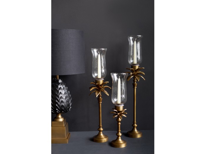 Το κηροπήγιο ANANIA 3 εντυπωσιάζει με τον μπρονζέ φοίνικα και το ψηλό γυάλινο κύλινδρο που δημιουργούν μια κομψή και εξωτική σύνθεση. Το αλουμίνιο προσφέρει στιβαρότητα και ανθεκτικότητα, ενώ το γυαλί προστατεύει το κερί και ενισχύει την ατμόσφαιρα φωτισμού. Ιδανικό για εισόδους, μπουφέδες, ξενοδοχειακούς χώρους ή statement corners στο σπίτι. Προσδίδει πολυτέλεια και ζεστή, ταξιδιάρικη διάθεση σε κάθε περιβάλλον.