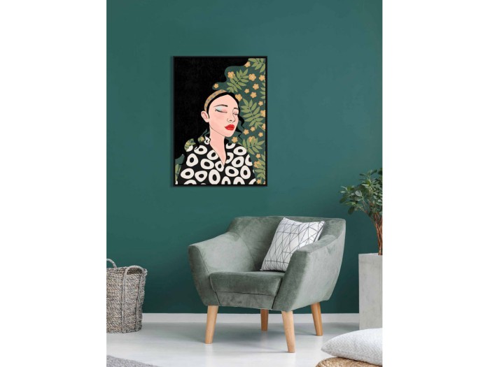 Ο πίνακας διακόσμησης "Botanical Lady" αποπνέει μια σύγχρονη αισθητική. Η γυναικεία φιγούρα στο κέντρο, φαίνεται να βρίσκεται σε μια κατάσταση εσωτερικής αναζήτησης ή απόδρασης ενώ οι έντονες αποχρώσεις των χρωμάτων, που πλανώνται γύρω της, δημιουργούν μια έντονη αντίθεση με το μαύρο φόντο, ενισχύοντας τη δυναμική του έργου.Ο πίνακας "Botanical Lady" φέρει μια αίσθηση μοντέρνας αισθητικής, ιδανικός για έναν χώρο που επιθυμεί να ενσωματώσει την τέχνη με σύγχρονο ύφος.