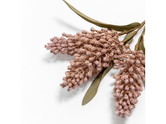 Μικρό αλλά εντυπωσιακό τεχνητό λουλούδι με συμπαγή άνθη σε απαλό ροζ χρώμα και φυσικής όψης πράσινα φύλλα. Η αφρώδης υφή του προσδίδει βάθος και αυθεντικότητα, καθιστώντας το ιδανικό για διακόσμηση βάζων, στεφανιών ή εποχιακών διακοσμήσεων.