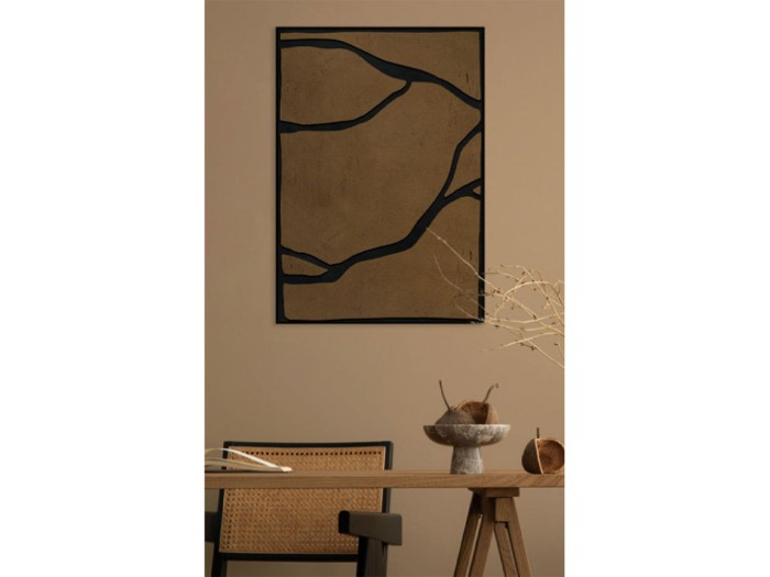Ο διακοσμητικός πίνακας EAVAN αποτελεί μια minimal αλλά δυναμική πρόταση διακόσμησης, με γεωμετρικές γραμμές σε κομψούς τόνους καφέ και μαύρου. Με εξωτερική διάσταση 82,6x122,6x4,3 cm, ταιριάζει άψογα σε επαγγελματικούς χώρους, lobby και σύγχρονες κατοικίες που αναζητούν ένα statement piece. Εκτυπωμένος σε καμβά, με κορνίζα από PS και ξύλο, συνδυάζει υψηλή αντοχή και premium φινίρισμα. Η λιτή αισθητική του πίνακα ενισχύει κάθε interior design που βασίζεται στη γεωμετρία και την καθαρή γραμμή.