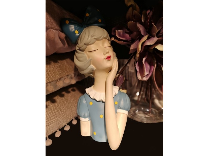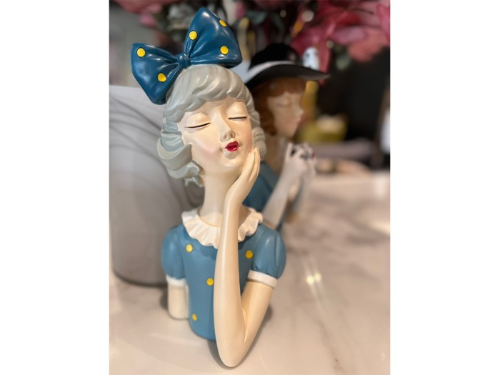 Η διακοσμητική φιγούρα TRAVEL GIRL αποτυπώνει με παιχνιδιάρικο και κομψό τρόπο τη ρετρό αισθητική ενός ταξιδιού. Κατασκευασμένη από polyresin σε αποχρώσεις του μπλε, λευκού και κίτρινου, με φιόγκο και ντελικάτη στάση, αποτελεί ιδανική πρόταση για ρομαντικές ή pop-art συνθέσεις. Ιδανική για βιτρίνες, ράφια ή δώρα με ιδιαίτερο χαρακτήρα.