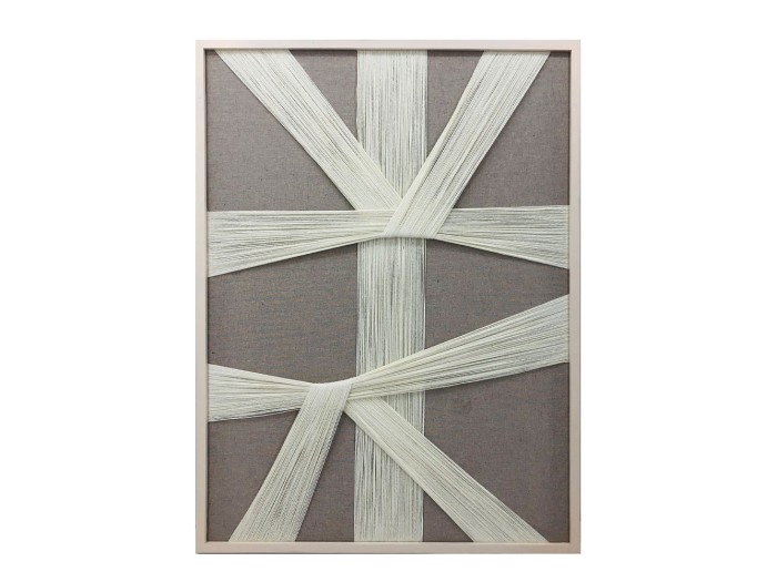 Το έργο "Made of Art" είναι μια εκλεπτυσμένη δημιουργική σύνθεση, όπου το λευκό νήμα, καθώς αναπτύσσεται πάνω στον γκρι καμβά, επισημαίνει την απλότητα της τέχνης και το μεγαλείο του χειροποίητου. Το γκρί χρώμα της βάσης αναδεικνύει τις λεπτές γραμμές και τα σχήματα που δημιουργούνται από την διαδρομή του νήματος, ενώ προσφέρει μια αίσθηση ηρεμίας και ισορροπίας. Το έργο "Made of Art" θα προσδώσει έναν δημιουργικό τόνο στον χώρο σας, συνδυάζοντας την τέχνη του χειροποίητου με την κομψότητα του απλού.