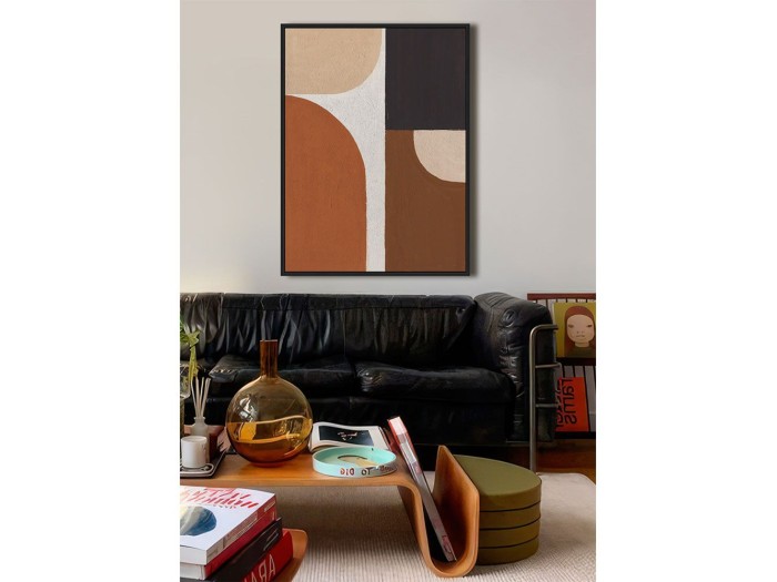 Ο πίνακας VARME B, σε καμβά με μαύρη ξύλινη κορνίζα, εντυπωσιάζει με τις ζεστές πολυχρωμίες του και τις αφηρημένες γεωμετρικές αντιθέσεις. Η σύνθεση δημιουργεί μια αίσθηση κίνησης, ιδανική για να δώσει χαρακτήρα σε έναν χώρο χωρίς να τον βαραίνει. Με διαστάσεις 60x80x4 cm, προσαρμόζεται εύκολα σε κάθε τύπο διακόσμησης. Ταιριάζει σε καθιστικό, υπνοδωμάτιο, αλλά και σε επαγγελματικούς χώρους όπως γραφεία ή lounge περιοχές.
