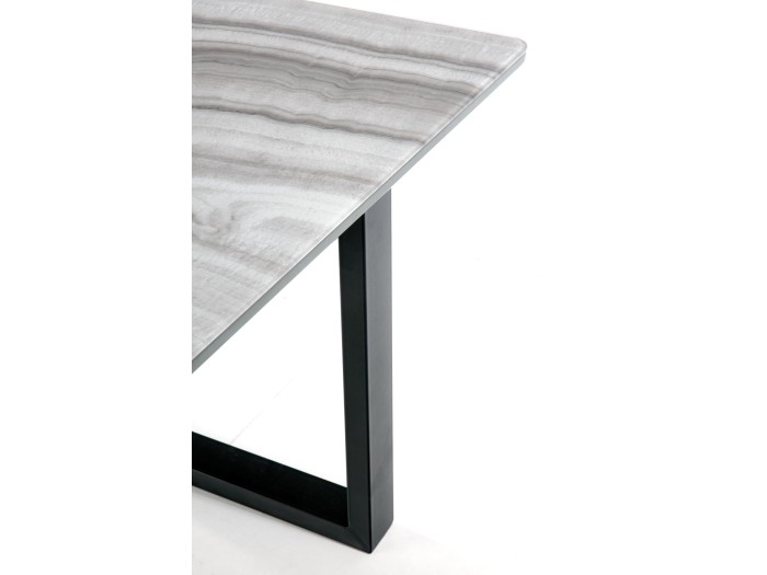 τραπέζι επέκτασης, διαστάσεις: 160-200/90/76cm, υλικό: γυαλί / λακαρισμένο MDF / ατσάλι με βαφή πούδρας, χρώμα: επάνω - λευκό μάρμαρο / γκρι, πόδια - μαύρο
