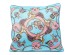 Μαξιλάρι με βελούδινο ύφασμα σε μπλε και ρόζ χρώμα με σχέδια άμαξες.