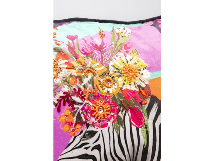 Ένα πραγματικό statement piece με wow factor: αυτό το εκκεντρικό διακοσμητικό μαξιλάρι φέρνει φρεσκάδα και ζωντάνια στο χώρο με το άγριο μοτίβο ζέβρας και τα αφηρημένα σχήματα σε έντονα, φωτεινά χρώματα. Λαμπερά, χειροποίητα στολίδια προσθέτουν μια πινελιά glam, μετατρέποντας το μαξιλάρι σε πρωταγωνιστικό αξεσουάρ για τον καναπέ, την πολυθρόνα ή το day bed. Το απαλό, βελούδινο ύφασμα προσκαλεί σε χαλάρωση, ενώ ταυτόχρονα προσθέτει μια δόση εκλεπτυσμένης εκκεντρικότητας σε κάθε γωνιά του σπιτιού. Ιδιαίτερα εντυπωσιακό σε συνδυασμό με μονόχρωμα υφάσματα ή καναπέδες με μοτίβα σε maximalist ύφος. Ένα διακοσμητικό eye-catcher με χαρακτήρα — γοητευτικά άγριο και πολυτελές ταυτόχρονα.