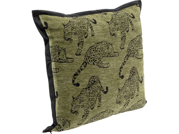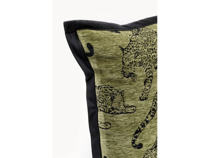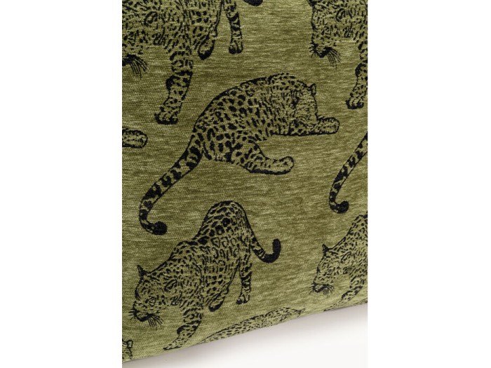 Το διακοσμητικό μαξιλάρι σε ζεστή πράσινη απόχρωση με μοτίβο λεοπάρδαλης αποπνέει δυναμισμό και εξωτική πολυτέλεια. Οι επαναλαμβανόμενες φιγούρες της λεοπάρδαλης πάνω στη βελούδινη επιφάνεια δημιουργούν ένα εντυπωσιακό, fashion-forward αποτέλεσμα που τραβά αμέσως το βλέμμα. Η απαλή υφή σε συνδυασμό με τις σκούρες λεπτομέρειες προσδίδουν βάθος και χαρακτήρα, καθιστώντας το ιδανικό για eclectic, maximal ή modern interiors που θέλουν να ξεχωρίζουν.