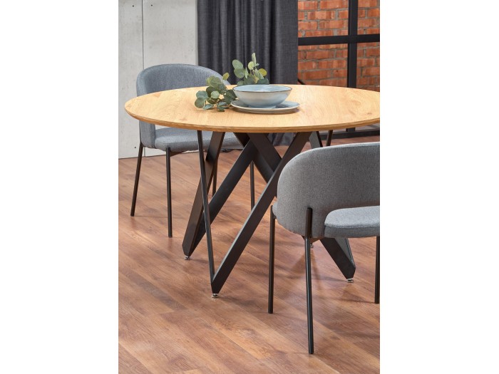 διαστάσεις: 120/75 cm, υλικό: πλαστικοποιημένο MDF / ατσάλι με βαφή πούδρας, χρώμα: επάνω - χρυσαφένιο δρυς, πόδια - μαύρο