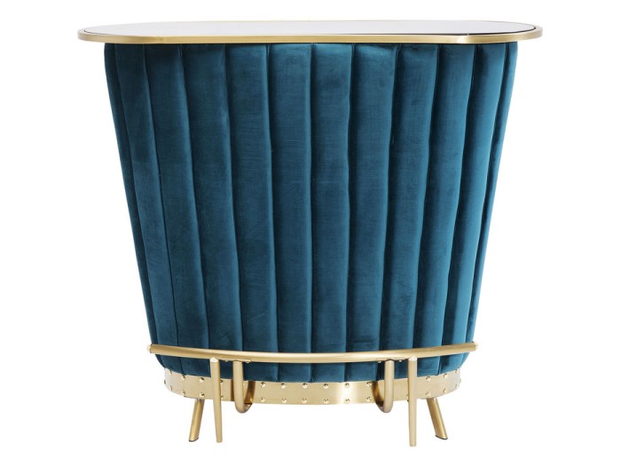 Μια υπέροχη επιστροφή: το home bar επιστρέφει! Εδώ δεν αναμειγνύονται μόνο φανταχτερά κοκτέιλ και σφηνάκια, αλλά γίνονται πολλά γέλια και - αργά το βράδυ - συζητήσεις που βελτιώνουν τον κόσμο. Σε κάθε περίπτωση, αυτό το έπιπλο είναι ένας καλός λόγος για να αλλάξετε τις μάλλινες κάλτσες σας με ψηλοτάκουνες γόβες στο σπίτι. Και όταν δεν υπάρχουν πάρτι, το κομψό μπαρ εμπλουτίζει το δωμάτιο με τον πολυτελή σχεδιασμό του και αποτελεί ένα κομψό σημείο ανάπαυσης για πλούσια μπουκέτα λουλουδιών. Διατίθενται τα αντίστοιχα σκαμπό μπαρ.
