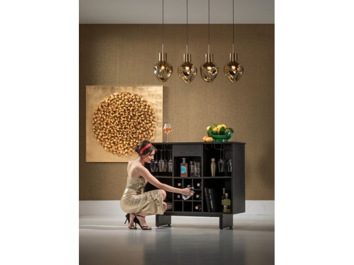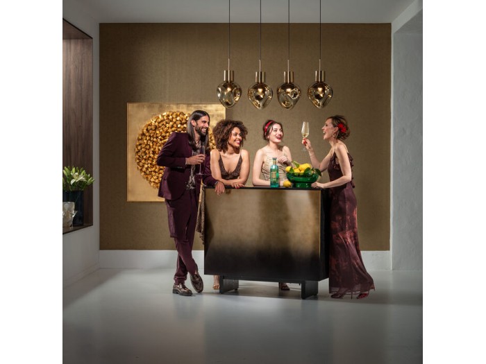 Αυτό το bar για το σαλόνι ξεχωρίζει για τα ποιοτικά υλικά και την ιδιαίτερη αισθητική του. Η μπροστινή του όψη, κατασκευασμένη από βουρτσισμένο ανοξείδωτο ατσάλι με χρωματική διαβάθμιση, αντανακλά το φως δημιουργώντας έναν εντυπωσιακό εφέ που αλλάζει ανάλογα με τη γωνία θέασης. Το bar Pezioso δεν εντυπωσιάζει μόνο με τον μοντέρνο, εκλεπτυσμένο σχεδιασμό του – διαθέτει και πλήρως οργανωμένο εσωτερικό: συρτάρι, ειδική θήκη για μπουκάλια, ράφια μεγάλης χωρητικότητας και ράγες για την ασφαλή αποθήκευση ποτηριών με μακρύ στέλεχος.