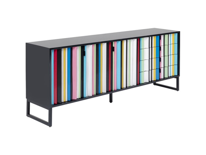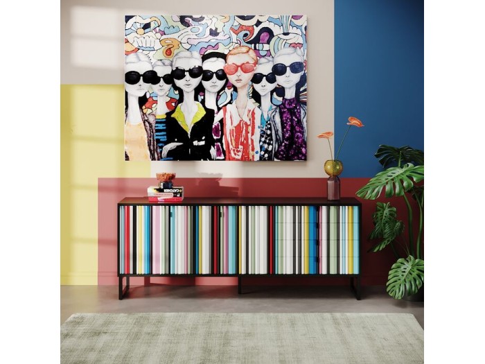 Εξαιρετικός μπουφές διαστάσεων 74x186x40cm (Υ/Π/Δ) με μαύρο πλαίσιο και πολύχρωμη, τρισδιάστατη πρόσοψη