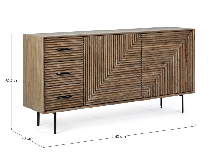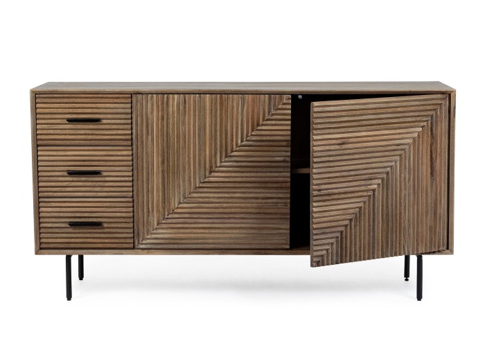 Ένας μπουφές από μασίφ ξύλο μάνγκο και μεταλλικά πόδια.