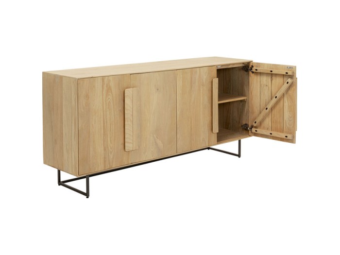 Η σειρά Mulino χαρακτηρίζεται από το ελαφρύ, φυσικό φινίρισμα της, το οποίο αναδεικνύει την φυσική εμφάνιση του ξύλου μάνγκο. Η μαλακή λουστραρισμένη επιφάνεια ενισχύει τον ατομικό κόκκο του ξύλου και δημιουργεί μια μοντέρνα, αέρινη όψη. Η δομή της μπροστινής όψης με ανάγλυφο σχέδιο προσδίδει καλλιτεχνικά στοιχεία, ενώ τα λεπτεπίλεπτα μεταλλικά πόδια δημιουργούν έναν συναρπαστικό συνδυασμό υλικών. Εκτός από το αισθητικό αποτέλεσμα, δημιουργείται πρακτικός και κομψός αποθηκευτικός χώρος - ιδανικός για έναν τακτοποιημένο χώρο με σχεδιαστικές φιλοδοξίες. Ιδανικό για σκανδιναβικούς, μινιμαλιστικούς ή μποχο εμπνευσμένους χώρους διαβίωσης, συνδυάζεται με απαλά γήινα χρώματα, αντίθετα μαύρα ή μεταλλικά στοιχεία για μια κομψή, φιλόξενη ατμόσφαιρα.