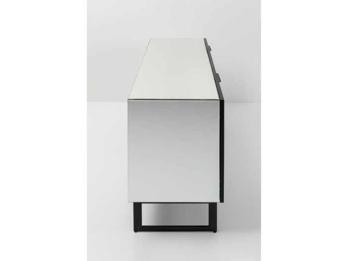 Ο μπουφές Soran διαθέτει απλό και κομψό σχεδιασμό, τον οποίο μπορείτε να χρησιμοποιήσετε στο σαλόνι, το διάδρομο ή το υπνοδωμάτιό σας ως ένα - κυριολεκτικά - οπτικό highlight. Επωφεληθείτε από την ενισχυτική για το φως επίδραση των καθρεφτών: τα δωμάτια με βόρειο προσανατολισμό φαίνονται πιο φωτεινά, ενώ σε ηλιόλουστα δωμάτια τα έπιπλα με καθρέφτες δημιουργούν μια φωτεινή ατμόσφαιρα. Ένα άλλο σπουδαίο αποτέλεσμα είναι οι αντανακλάσεις του δαπέδου, το χρώμα του τοίχου ή ένα φωτιστικό δαπέδου δίπλα στη συρταριέρα. Αγαπάτε τα πράγματα που είναι λίγο ιδιαίτερα; Τότε τοποθετήστε ένα χρωματιστό ή με μοτίβο χαλί μπροστά από το αντανακλαστικό κομοδίνο και θα πετύχετε αξέχαστα εφέ. Τέλος, η αντανακλαστική πρόσοψη κάνει τα δωμάτια να φαίνονται οπτικά μεγαλύτερα. Τα μαύρα ατσάλινα χερούλια έχουν τόσο μινιμαλιστικό και μοντέρνο σχεδιασμό που δεν γίνονται καν αντιληπτά με την πρώτη ματιά. Το ίδιο ισχύει και για το πλαίσιο, το οποίο κάνει τον μπουφέ να μοιάζει σαν να αιωρείται. Έτσι, ίσως να έχετε τον πιο όμορφο μπουφέ απ' όλους!