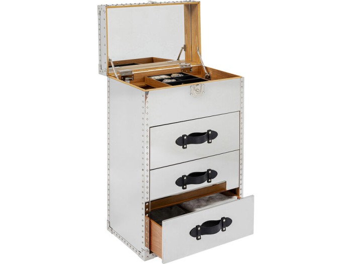 Το να έχετε τη δική σας μονάδα ματαιοδοξίας στο σπίτι σας δημιουργεί αμέσως μια αίσθηση πολυτέλειας και μεγαλοπρεπούς ξενοδοχειακού στυλ. Ωστόσο, ένα έξυπνα σχεδιασμένο ντουλάπι έχει και πολλά άλλα πλεονεκτήματα. Τα λειτουργικά κομοδίνα βοηθούν να διατηρείτε τα πράγματα τακτοποιημένα και όλα τα σκεύη σας σε κοντινή απόσταση. Με τον δικό του αποκλειστικό χώρο, η καθημερινή εφαρμογή του μακιγιάζ γίνεται μια ευχάριστη τελετουργία που δημιουργεί χώρο για δημιουργικότητα. Η χρήση ειδικών ντουλαπιών μακιγιάζ όχι μόνο τονίζει το στυλ του δωματίου, αλλά μεγιστοποιεί και τη λειτουργικότητά του. Και τέλος, ο δικός σας προσωπικός χώρος μακιγιάζ σας δίνει να καταλάβετε ότι είναι ώρα για μένα!Ένα μασίφ ντουλάπι μακιγιάζ με επένδυση από λουστραρισμένο ανοξείδωτο ατσάλι, 100 x 65 x 40 cm (Υ/Β/Δ)
