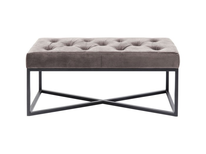 Ακαταμάχητο! Ένας βελούδινος γκρι ταπετσαρισμένος πάγκος με εντυπωσιακό μαύρο σκελετό, ο οποίος αντιπροσωπεύει δροσερή πολυτέλεια και είναι ταυτόχρονα εξαιρετικά πρακτικός.