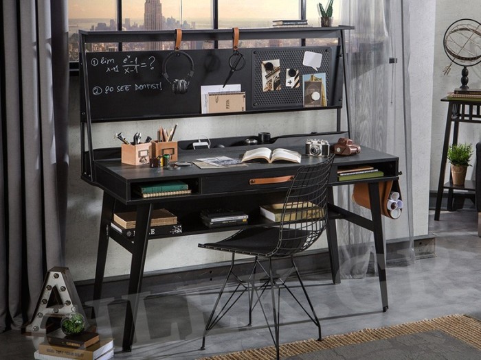 Το αναλόγιο στη πλάτη του γραφείου με τον μικρό μαυροπίνακα, τον πίνακα ανακοινώσεων με καρφίτσωμα, είναι το ιδανικό γραφείο του μαθητή. Πολυτελής ανέσεις όπως, τα κρεμαστά δερμάτινα χερούλια για ακουστικά μουσικής μαζί με το δερμάτινο σύστημα αποθήκευσης σημειώσεων το οποίο αποσπάται και μεταφέρεται, είναι εξαιρετικό και σχεδιαστικά προνοεί τις ανάγκες.