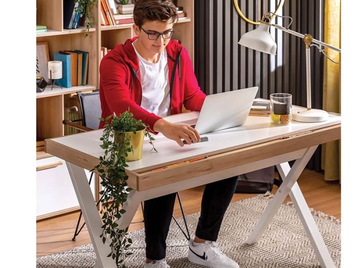 Ένα μεγάλο και μοντέρνο γραφείο για το δωμάτιο σας, με μεγάλη επιφάνεια εργασίας, Το Modera Youth Study Desk προσελκύει την προσοχή ως ένα από τα πιο όμορφα προϊόντα σε δωμάτια νεότητας με τον απλό και μοντέρνο σχεδιασμό του. Φέρνοντας ένα άνετο και ήρεμο περιβάλλον εργασίας στους χώρους διαβίωσης των νέων,