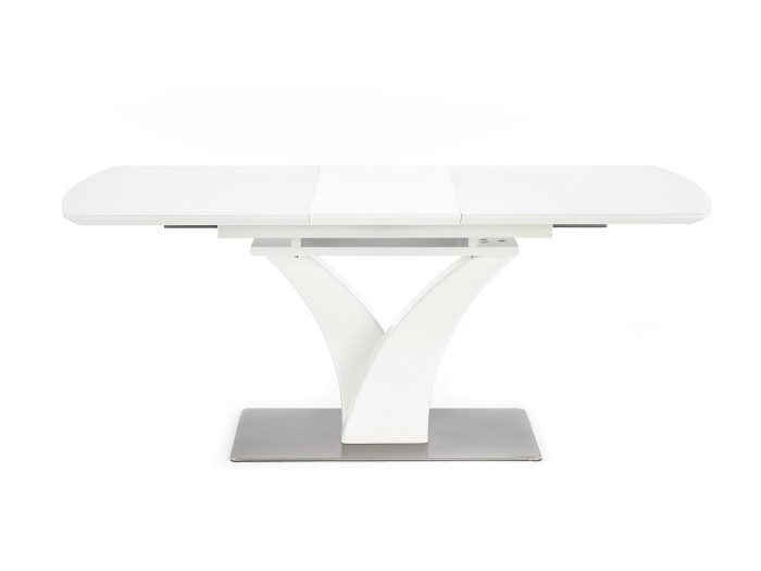 διαστάσεις: 140÷180/80/75 cm, τραπέζι επεκτεινόμενο, υλικό: γυαλί / λακαρισμένο MDF / ανοξείδωτο, χρώμα: λευκό