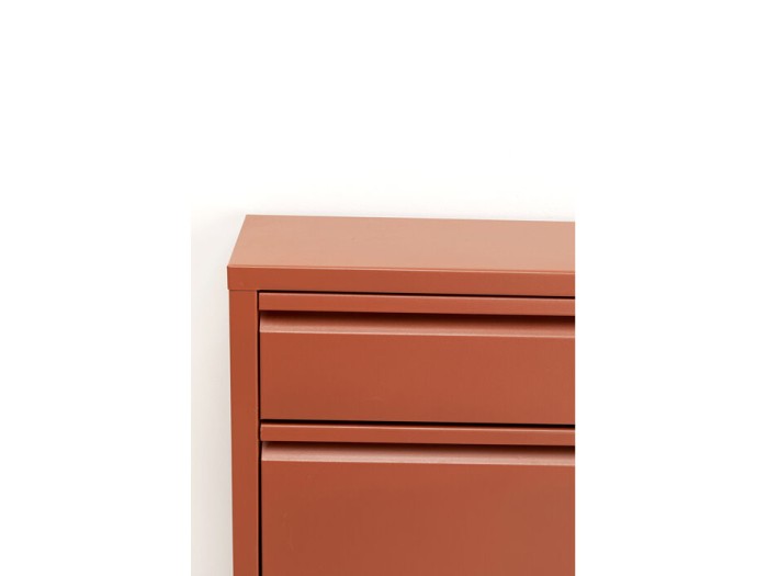 Έξυπνος σχεδιασμός που συναντά τη λειτουργικότητα! Αυτή η στενή μεταλλική παπουτσοθήκη σε ζεστή σκουριασμένη-καφέ απόχρωση συνδυάζει μινιμαλιστική κομψότητα με πρακτική φινέτσα. Τα τρία ανακλινόμενα διαμερίσματα προσφέρουν χώρο για τουλάχιστον έξι ζευγάρια παπούτσια, ενώ το επιπλέον συρτάρι αποτελεί ένα κομψό σημείο απόκρυψης για μικροαντικείμενα καθημερινής χρήσης, όπως κλειδιά ή ακουστικά. Η λεπτή της φόρμα την καθιστά ιδανική λύση για στενούς διαδρόμους ή μικρούς χώρους. Σε συνδυασμό με έναν μοντέρνο καθρέφτη και διακριτικές κρεμάστρες τοίχου, μετατρέπεται σε κομψό highlight της εισόδου.