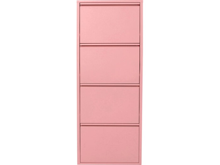 Το ντουλάπι παπουτσιών Caruso 4 Rose φέρνει τάξη στην είσοδο με μια απροσδόκητα χαριτωμένη, ροζ πινελιά. Η λεπτή, κάθετη σχεδίασή του εξοικονομεί χώρο, ενώ τα τέσσερα ανακλινόμενα διαμερίσματα κρύβουν τα παπούτσια με κομψό τρόπο, αφήνοντας τον χώρο να δείχνει πάντα τακτοποιημένος. Η ματ ροζ απόχρωση δίνει χαρακτήρα σε χολ, γκαρνταρόμπα ή νεανικό διαμέρισμα και συνδυάζεται εύκολα τόσο με λευκά όσο και με πιο έντονα χρώματα.