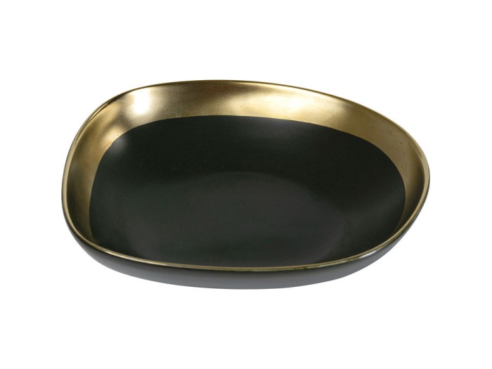 Εξαιρετική χειροποίητη κεραμική πιατέλα, σε πολύ σκούρο πράσινο με ματ χρυσό άκρο.