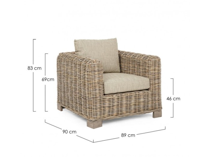 Πολυθρόνα εξωτερικού χώρου από φυσικό ρατάν και ξύλο mango με πλέξη από kubu.